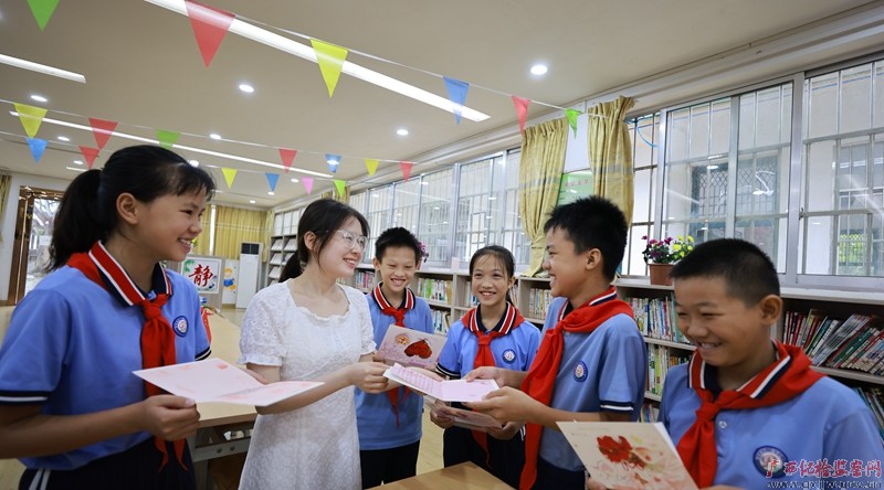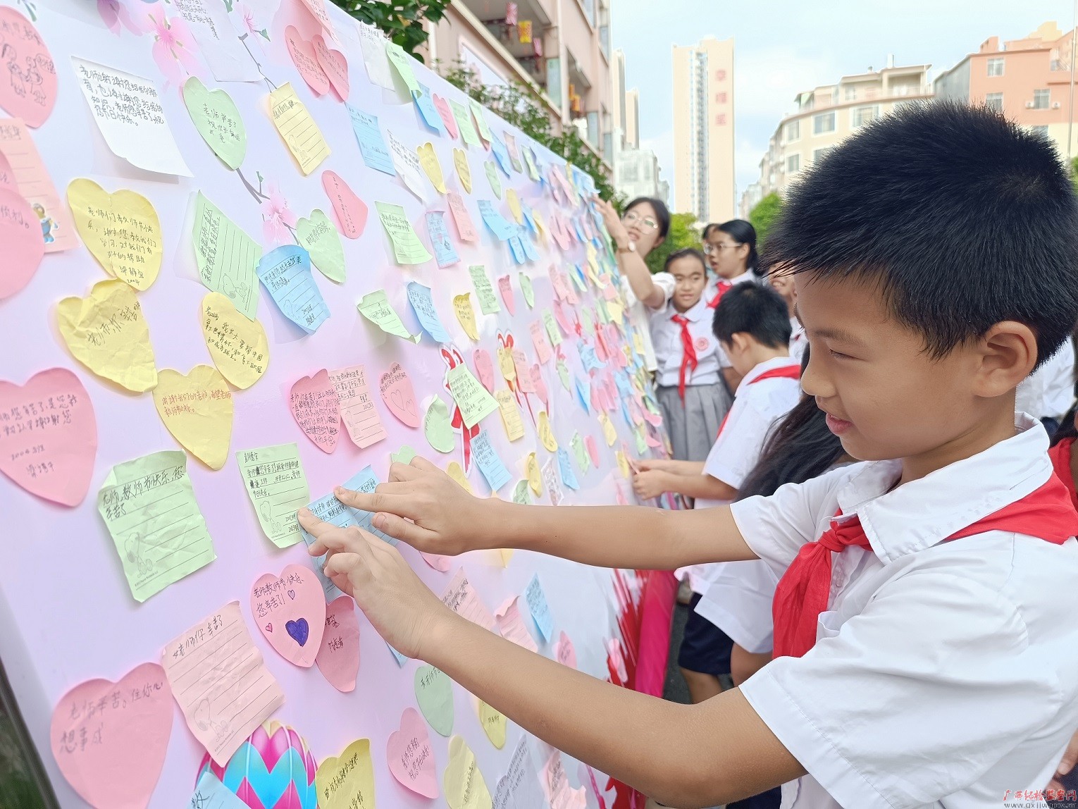 为庆祝第39个教师节,兴业县各中小学组织开展一系列活动,进一步推进师德建设,弘扬尊师重教的良好风尚。图为,9月7日兴业县第一实验小学开展“贴纸送祝福”主题活动。(兴业县纪委监委 廖益兰/摄)
