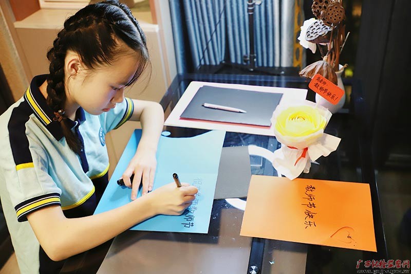 教诲如春风,师恩似海深。在教师节到来之际,同学们用笔尖写下对老师的浓浓情谊,送上绵绵祝福。(扶绥县纪委监委 陈松杰/摄)