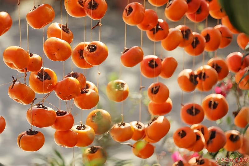 金秋十月,恭城瑶族自治县的柿子成熟了,这是秋天最具代表性的景色之一,满满当当的果实晾晒在暖暖的秋阳中,展现出一幅丰收的美丽画卷。(恭城县纪委监委 侯土云/摄)