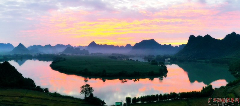 十月清晨,扶绥县渠黎镇四周群山环绕、苍翠欲滴,江水映衬着朝霞,远处的云雾宛如玉带缠绕在山腰间,构成了一幅诗意盎然的水墨丹青。(扶绥县纪委监委 蓝天霓/摄)