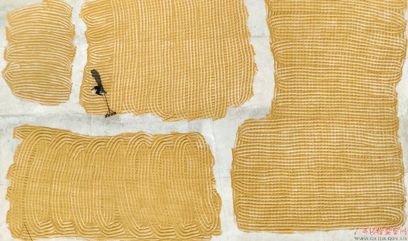 立冬至,粮入仓。融水苗族自治县白云乡高孝屯的晚稻收割进入尾声,农民抢抓晴好天气,进行水稻收割、晾晒、入仓,大晒场上一片片金灿灿的稻谷,展现一幅丰收的美丽画卷。(柳州市鱼峰区纪委监委 蔡继青/摄)