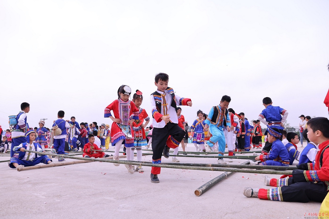 兴业县以铸牢中华民族共同体意识为主线,加强民族交往交流交融,组织开展丰富多彩、寓教于乐的民族团结一家亲活动,推动民族团结工作走深走实。图为兴业县城南小学师生一起跳竹竿舞、抛绣球,在轻松愉悦的氛围中,传递着深厚的民族团结之情。(兴业县纪委监委 梁钧翔/摄)