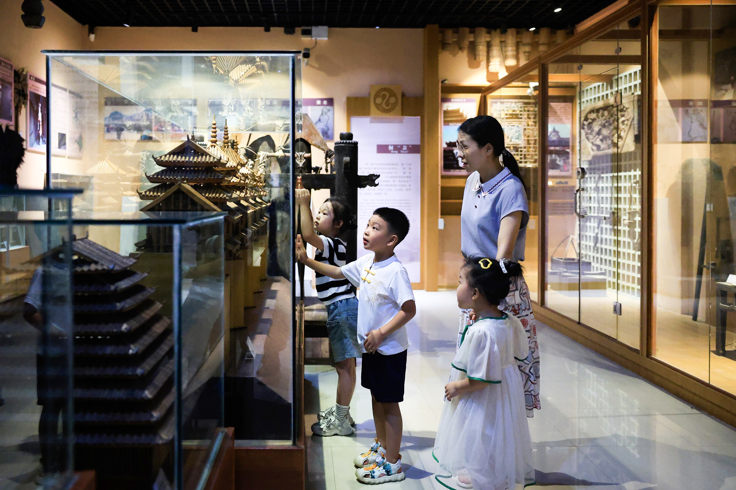 三江侗族自治县侗族博物馆展陈有侗族木构、侗族服饰,侗族乐器等,是了解侗族历史、文化、生活习俗的一个重要窗口。暑假期间,不少家长利用假期带着孩子前往博物馆打卡,感受侗族文化魅力。(三江侗族自治县纪委监委 梁晓/摄)