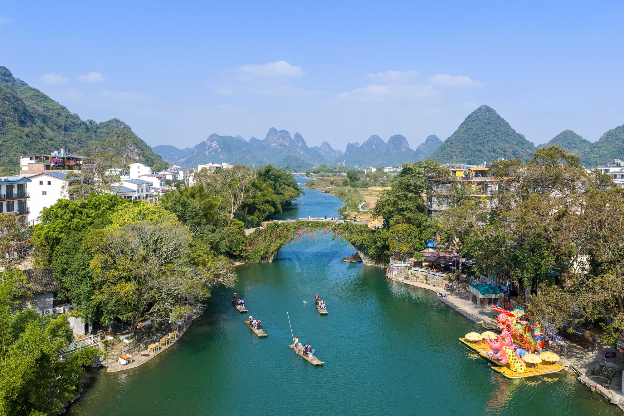 初冬时节的遇龙河畔,碧水如翡翠般清澈透亮,倒映着蓝天白云的柔影。竹筏悠然划过粼粼波光,两岸青石板桥静卧,白墙黑瓦的村落点缀于青山之间,勾勒出“小桥流水人家”的静谧祥和。(阳朔县纪委监委供 夏立慧/摄)