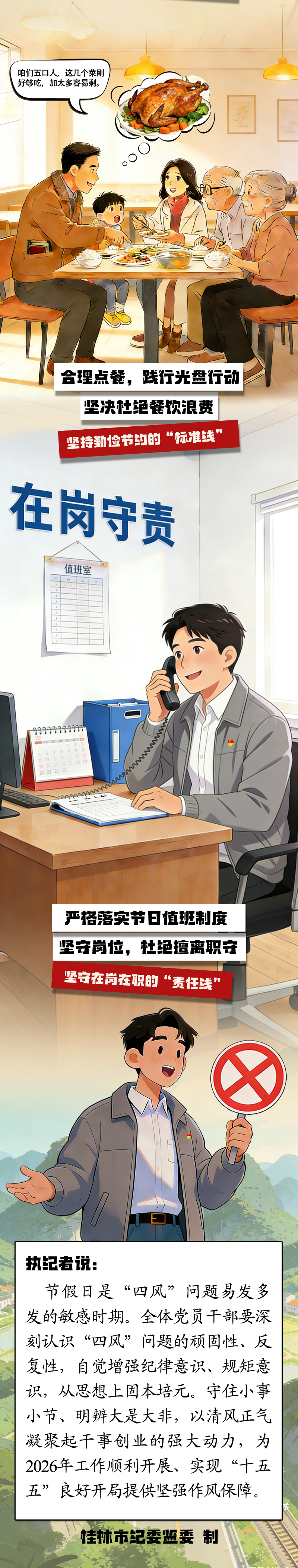 长图丨过节不“脱节” 纪律不“打烊”