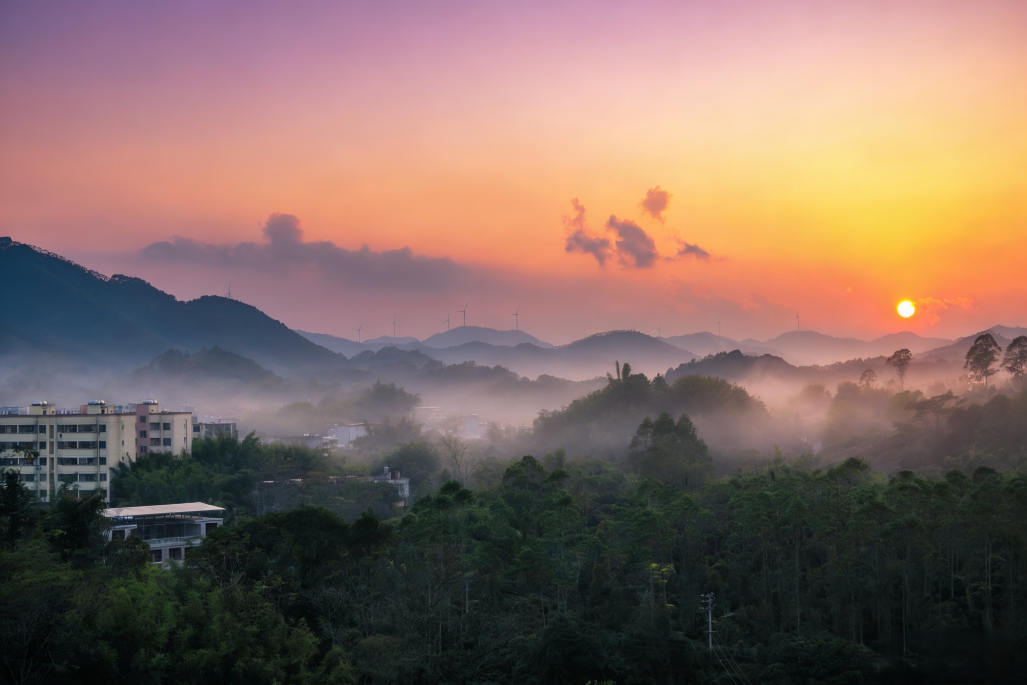 小寒时节,暮色中的北流市平政镇,残阳如砚,将漫天云霞研成橘红、绛紫,层层晕染峰峦。山影横斜,冷雾与暖霞相拥,草木凝霜却缀着金辉。(北流市纪委监委供 李家辉/摄)