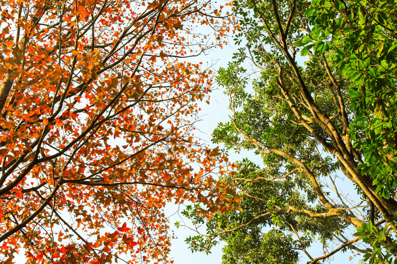 在容县高山上的枫树换上了斑斓彩衣,深红叠着橘黄,浅红映着晴光,为凛冽冬日晕染出一抹温柔明艳的亮色。(容县纪委监委供 龙海强/摄)