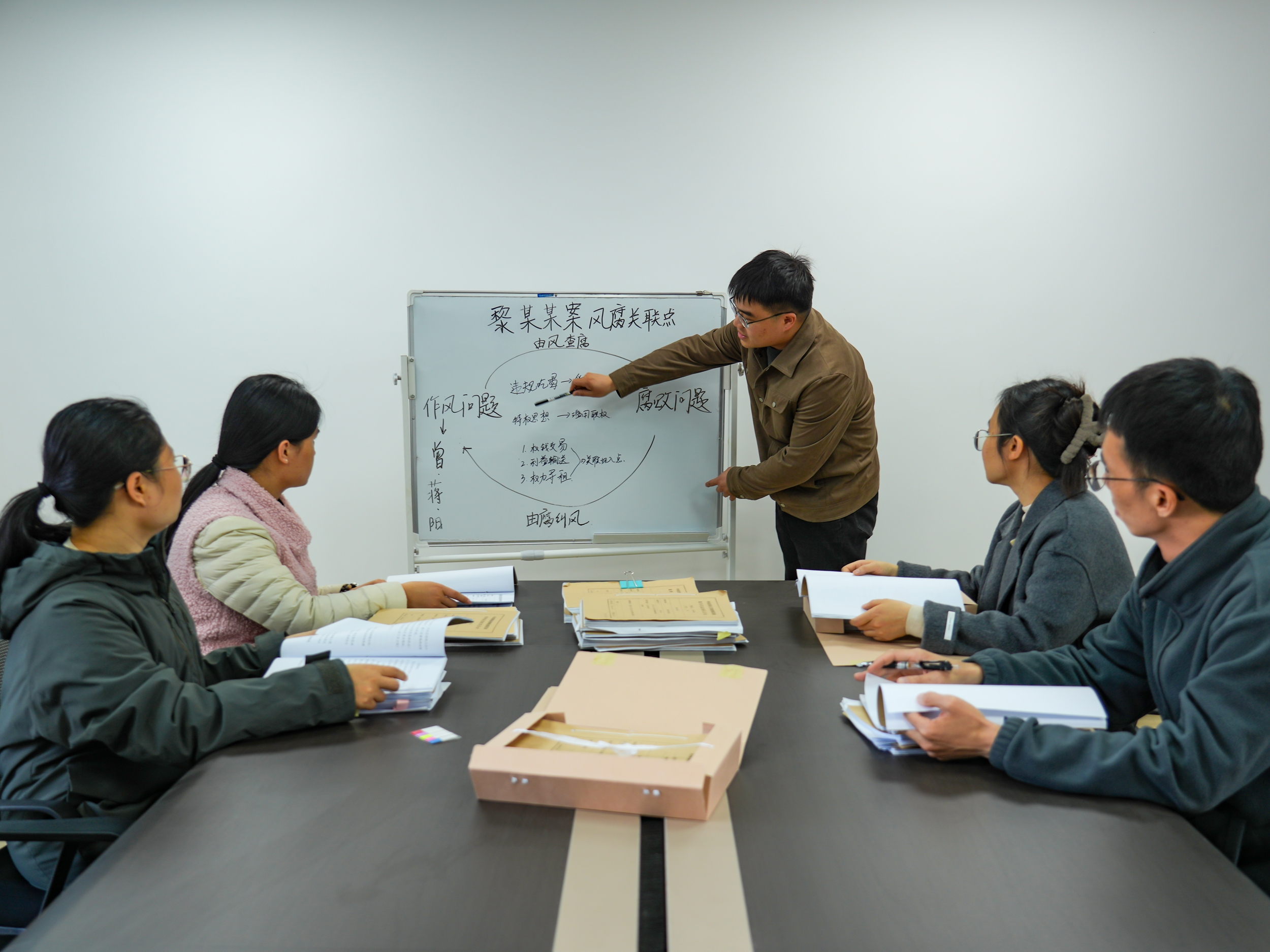 阳朔县纪委监委紧盯重要时间节点,通过通报典型案例、发送廉洁提醒短信、召开警示教育会等方式强化纪律教育,推动廉洁过节。图为该县纪检监察干部剖析某单位“一把手”违纪违法案例,用“身边事”教育“身边人”。(阳朔县纪委监委供 徐维薇/摄)