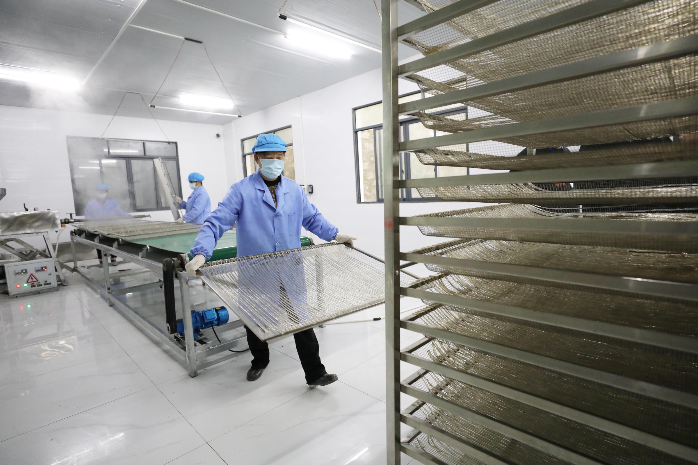 柳州市融安县广福农村集体经济组织管理有限责任公司生产车间内一片繁忙,工人们正抓紧时间赶制红薯粉供应节庆市场。机器轰鸣声中,缕缕红薯粉整齐排放,成为节前温暖的风景线。(融安县纪委监委供 罗洁芳/摄)