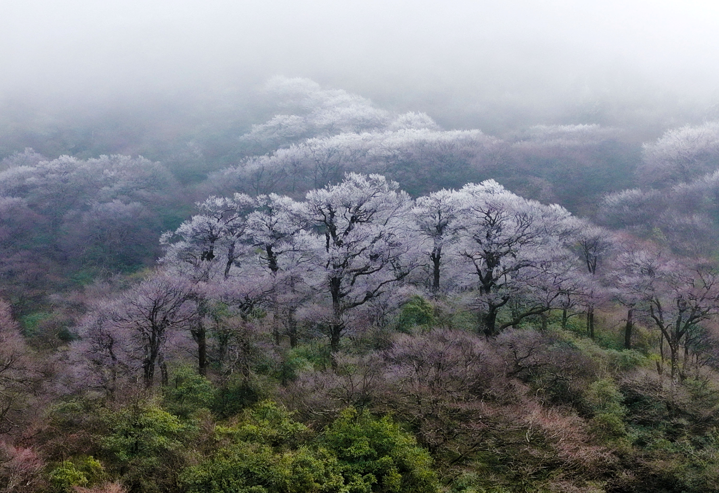 大寒至,降霜雪。融水苗族自治县高寒山区一片银装素裹,玉树琼花,与远山、绿树、梯田相互映衬,美如画卷。图为该县同练瑶族乡梓山坪出现雾凇景观,构成一幅如诗如画的冬日画卷。(融水苗族自治县纪委监委供 龙林智/摄)
