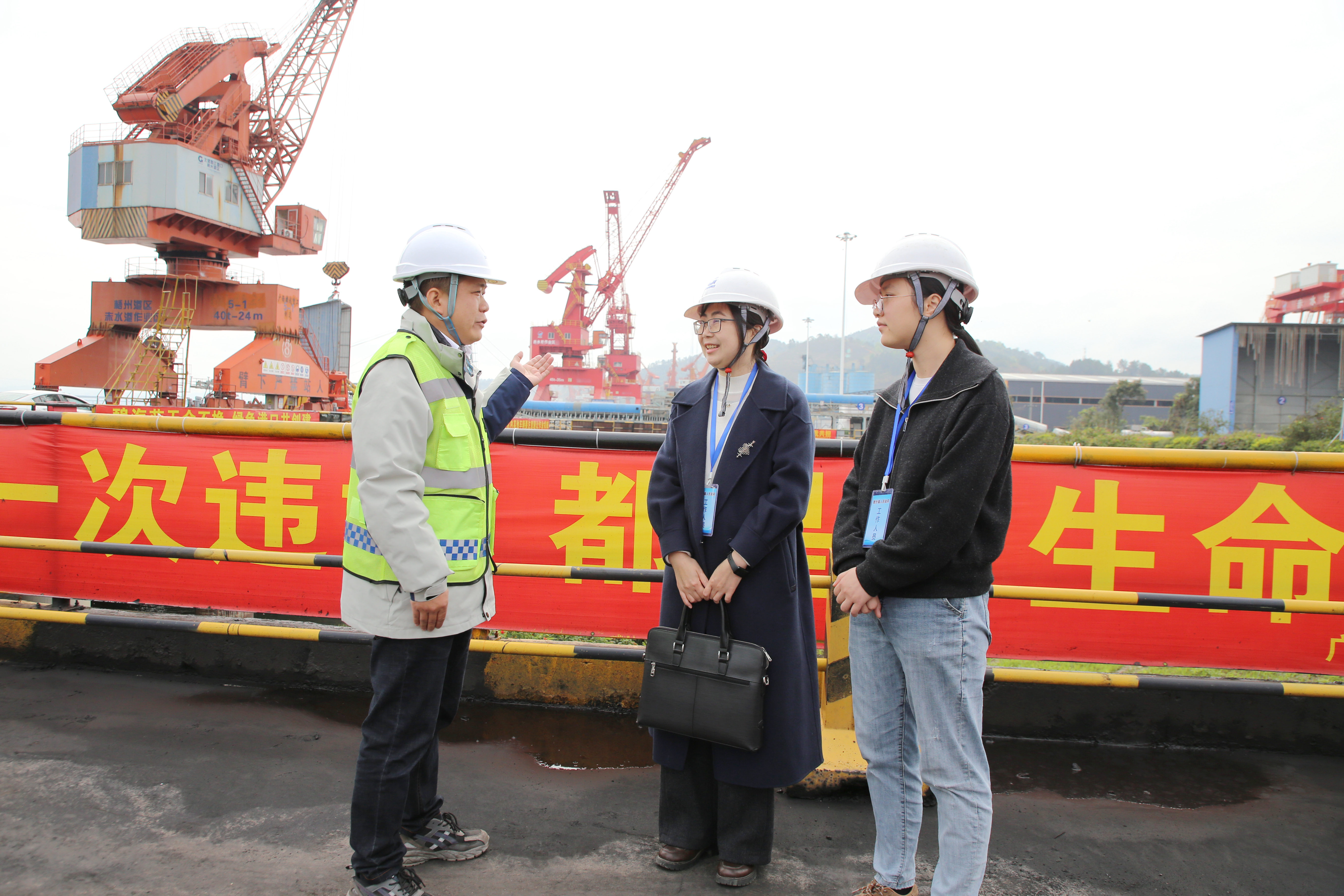 藤县纪委监委聚焦重大项目前期决策、立项审批、招标投标、竣工验收、干部作风等方面,通过主动下沉一线“听”、走访一线“看”等方式开展嵌入式监督检查,督促相关部门履职尽责,全力护航重点项目建设廉洁高效,助力项目建设跑出“加速度”。图为该县纪检监察干部在广西西江临港赤水港务有限公司码头项目现场了解有关情况。(藤县纪委监委供 陈丹艳/摄)