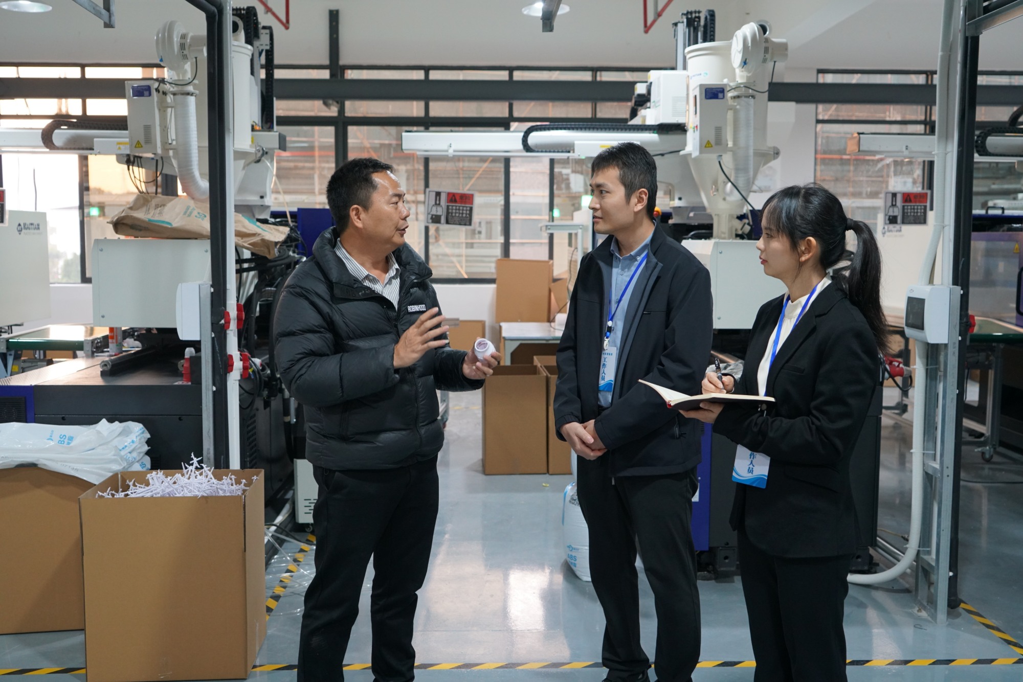 北流市纪委监委围绕重大项目推进、新质生产力企业快速发展、惠企政策落实等,组织纪检监察干部深入到工厂、车间等地,听取生产经营情况介绍,帮助协调解决困难,督促相关部门强化责任,护航重大项目顺利推进。图为该市纪检监察干部到民安工业园走访相关企业,收集问题意见。(北流市纪委监委供 李家辉/摄)