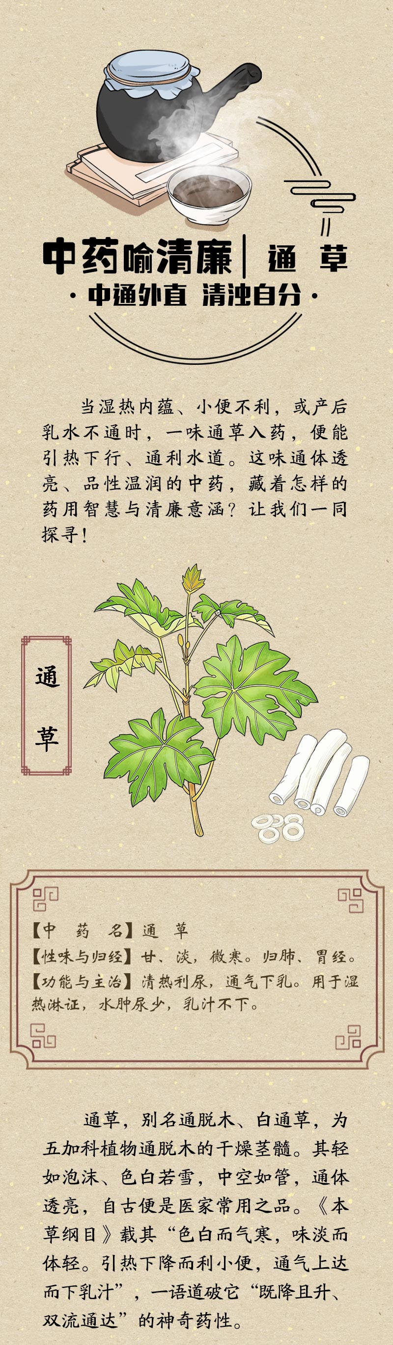 中药喻清廉丨通草:中通外直 清浊自分