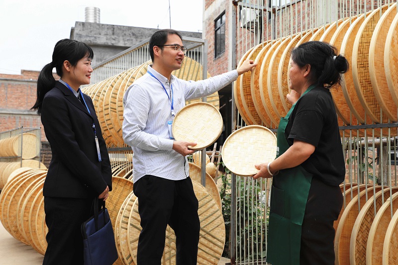 博白县纪委监委立足“监督的再监督”职责定位,将芒竹编特色产业发展纳入政治监督重点,紧盯党员干部履职、补贴资金发放、政策落实等关键环节开展监督检查,压实相关职能部门责任,推动解决影响特色产业发展的问题,为乡村振兴注入清廉动能。图为该县纪检监察干部在博白县亚山镇和平村了解芒竹编产业发展情况。(博白县纪委监委供 冯明/摄)