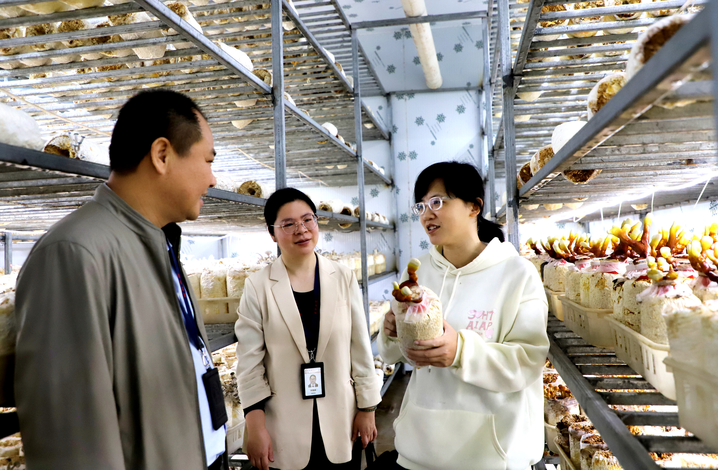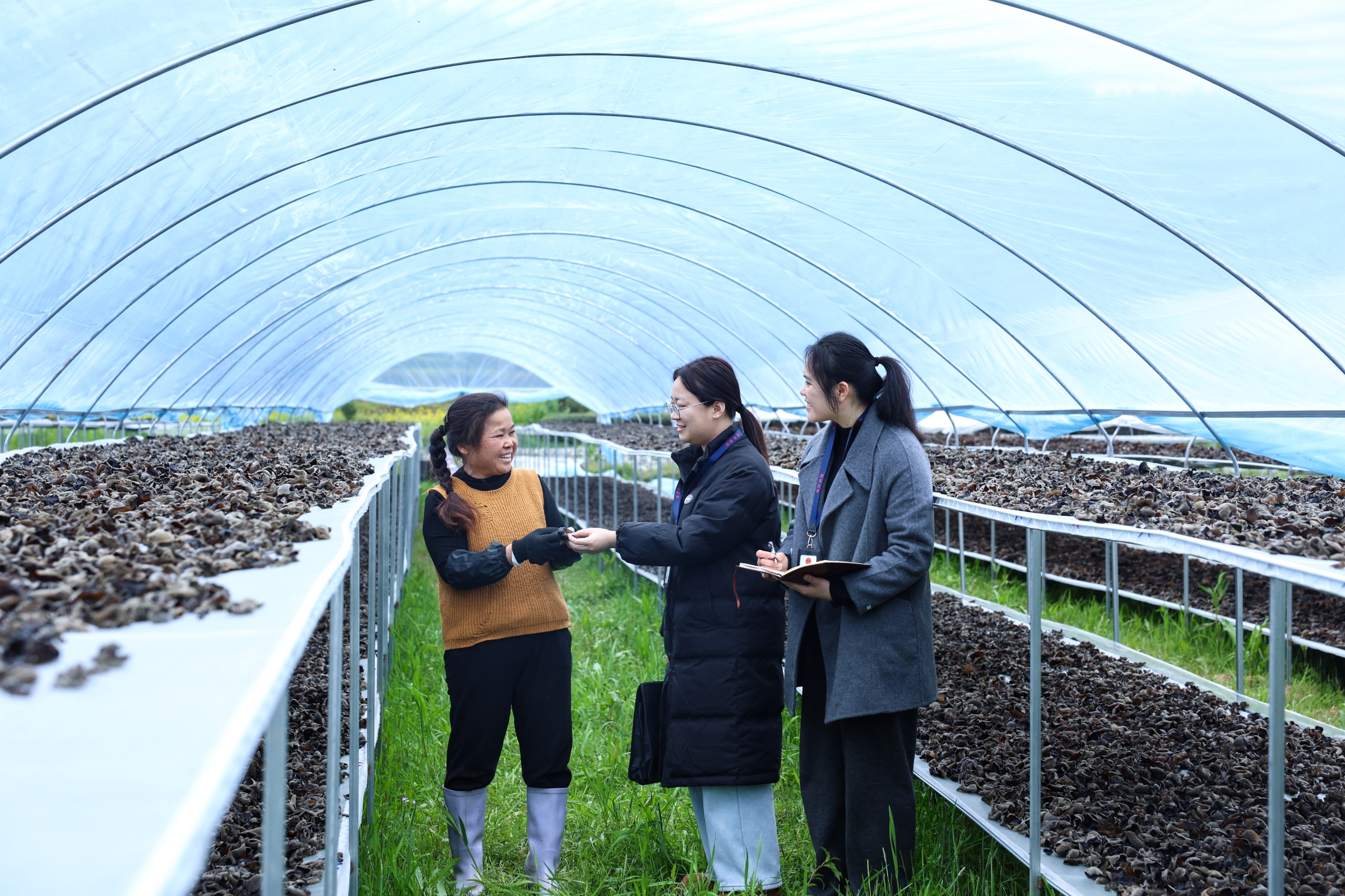 蒙山县纪委监委将护航特色产业发展作为政治监督的重要着力点,综合运用下沉走访、专项督查、联动整治等方式,精准发现并推动解决产业发展中的堵点难点问题。图为该县纪检监察干部在夏宜瑶族乡六洛村食用菌基地走访,了解产业发展现状及优惠政策兑现等情况。(蒙山县纪委监委供 钟德献/摄)