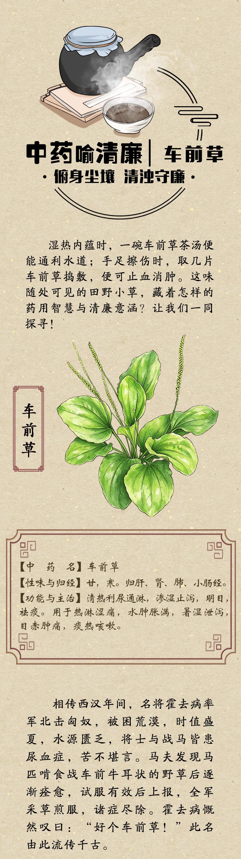 中药喻清廉丨车前草:俯身尘壤 清浊守廉