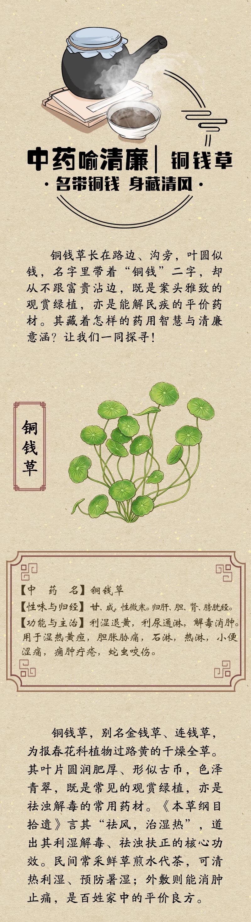 中药喻清廉丨铜钱草:名带铜钱 身藏清风